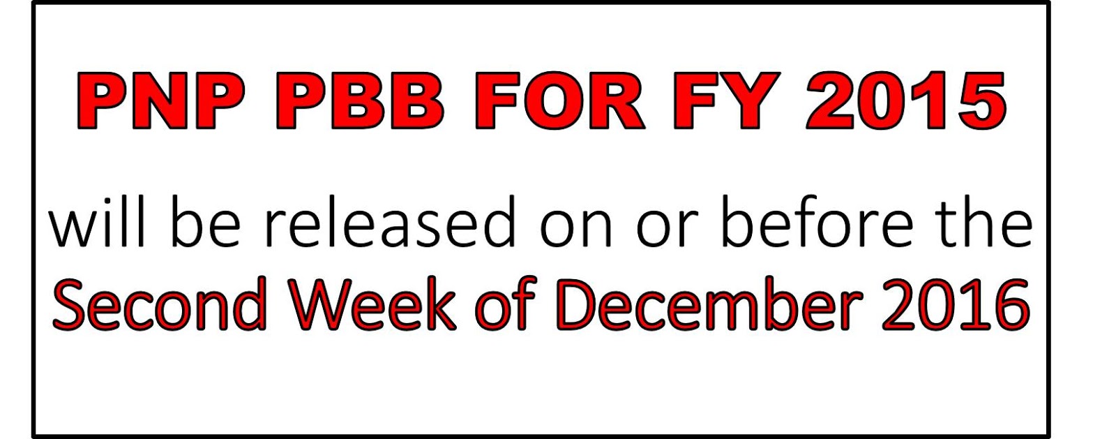 Currently, the expected release of the PNP PBB for FY 2015 is on or before the Second Week of December 2016.