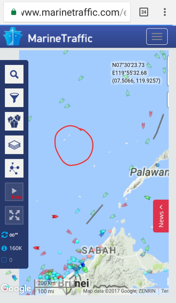 Encircled red on the second photo is the approximate location of Pagasa Island and surrounding reefs. Not a single vessel detected in the area. Either they left already, or they turned off their AIS-Sat to avoid detection of their location. The latter is more plausible.