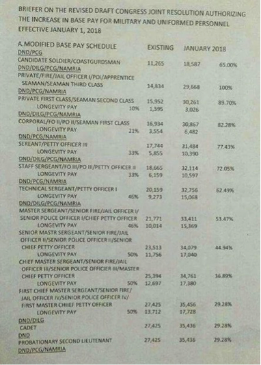 So to start with, I will present a table of the base pay increase for military and uniformed personnel: