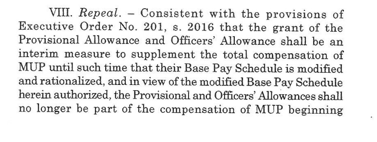 In fact, as far as I know, under the repealing clause of Joint Resolution No. 1, only the Provisional and Officer Allowances were removed explicitly. It is therefore understood that all other provisions of E.O. 201 will remain effective.
