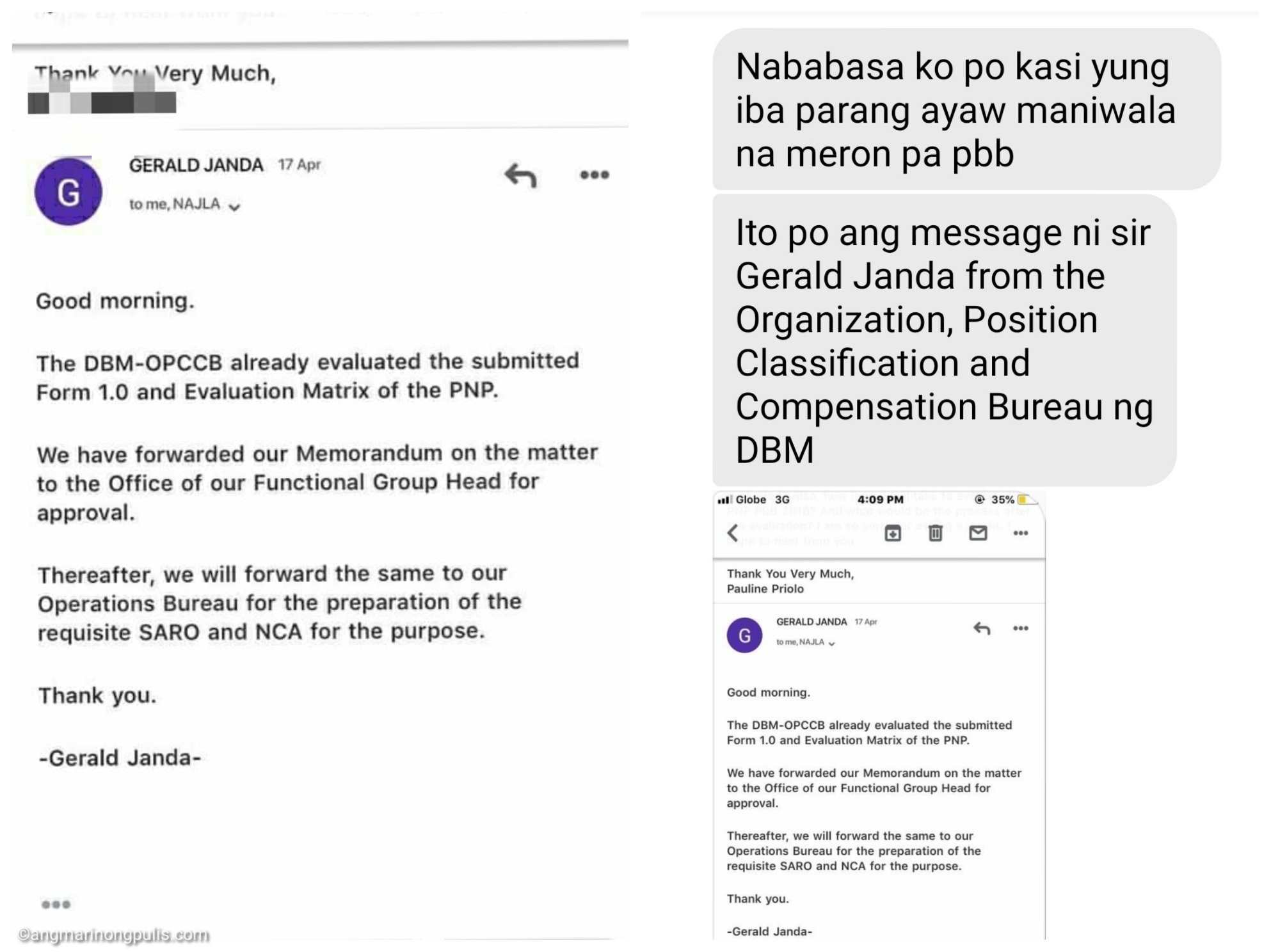 “Nababasa ko po kasi yung iba parang ayaw maniwala na meron pa PBB. Ito po ang message ni sir Gerald Janda from the Organization, Position Classification and Compensation Bureau ng DBM.”